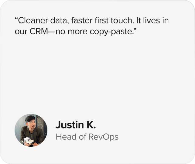 Use the extension alongside Salesforce and your daily tools; captured context stays tied to the record as deals progress.