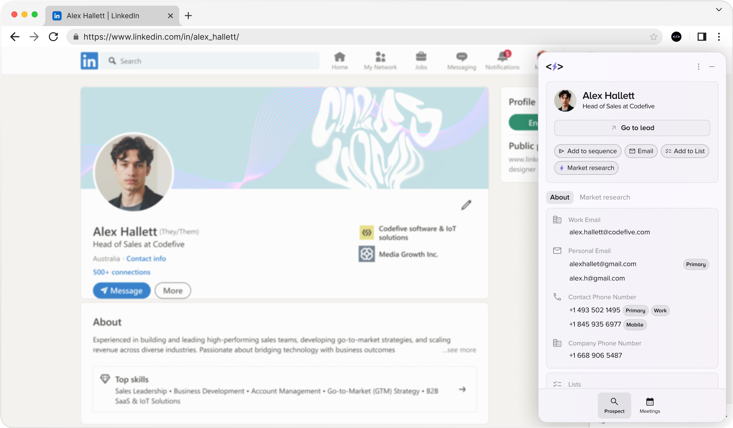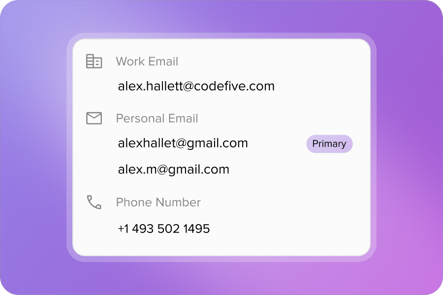 The moment you capture, get verified email and phone options along with key company details (industry, size, description)—so outreach never stalls.