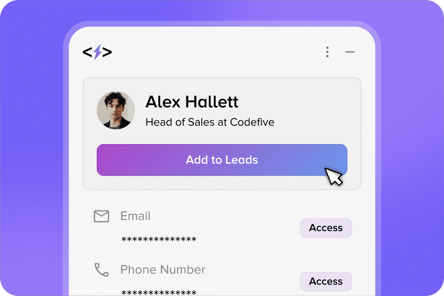 The moment you capture, get verified email and phone numbers along with key company details (industry, size, description), so outreach never stalls.